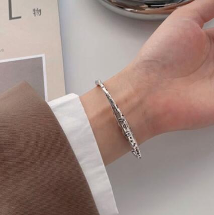 洗練されたシルバー調のバングルで、メンズアクセサリーとして最適なアイテムです。