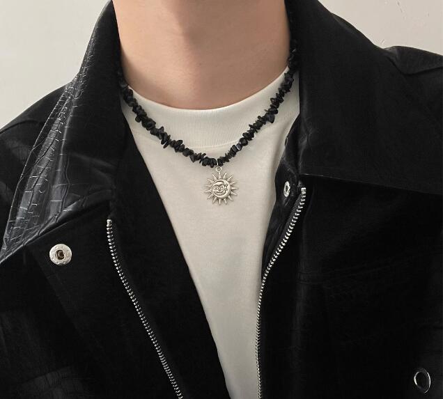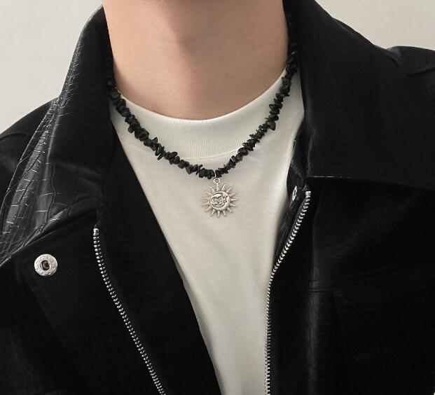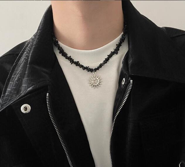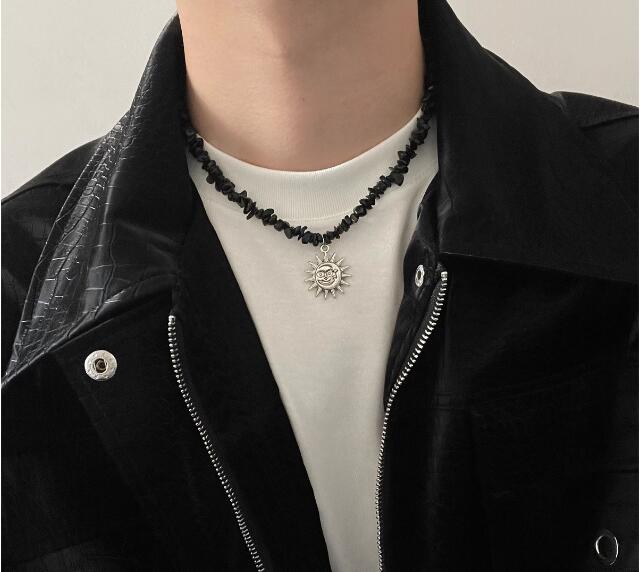 メンズアクセサリーの定番、太陽の顔をモチーフにした個性的なペンダントネックレスです。