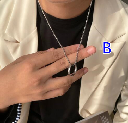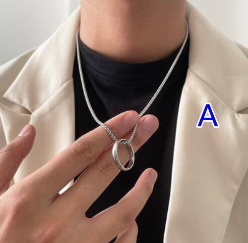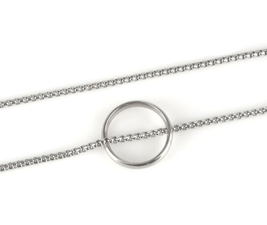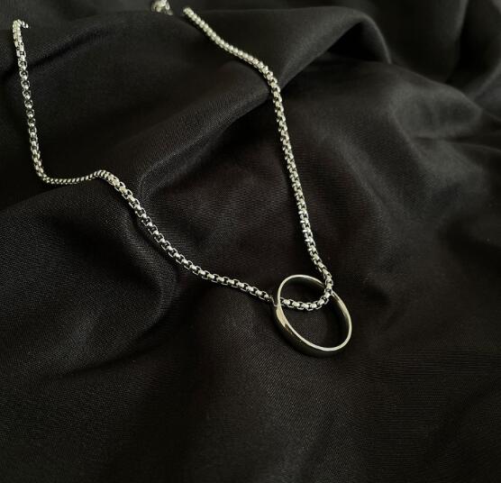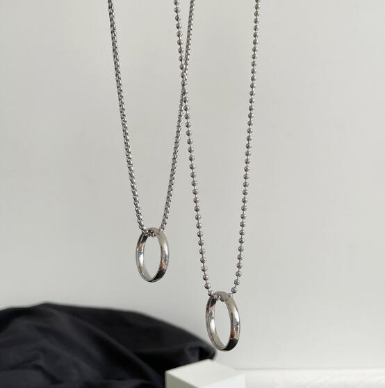 洗練されたデザインの楕円リングペンダントが印象的なメンズアクセサリーネックレス。