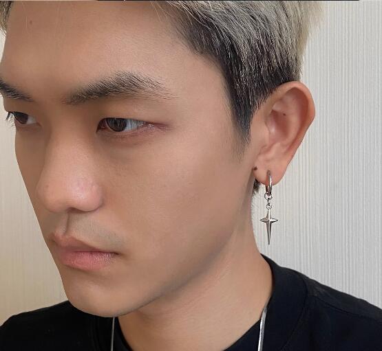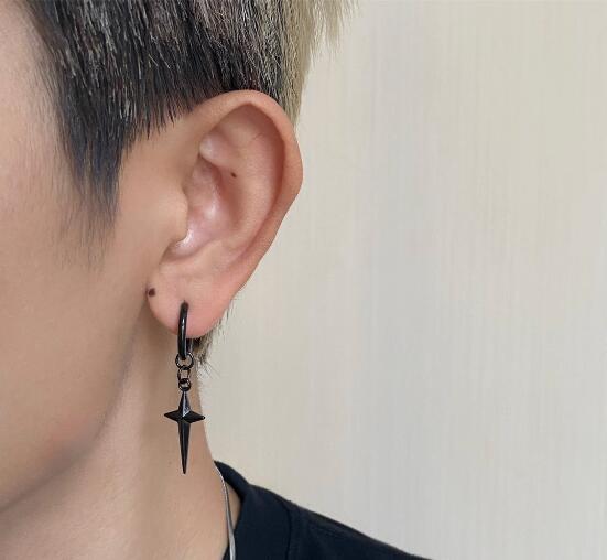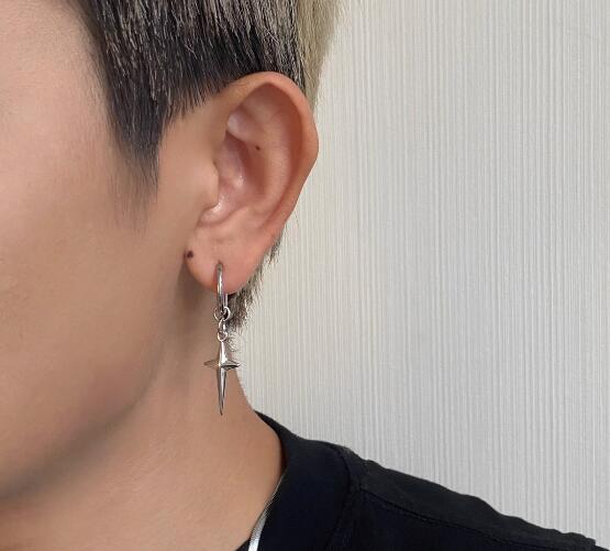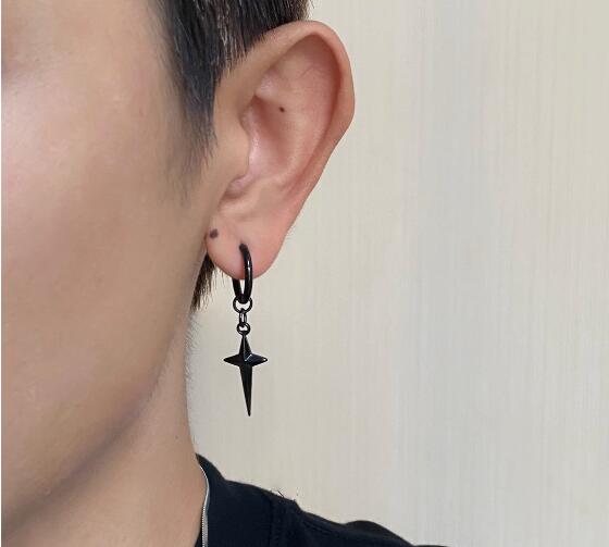 メンズアクセサリーの定番、星型チャーム付きフープピアスです。