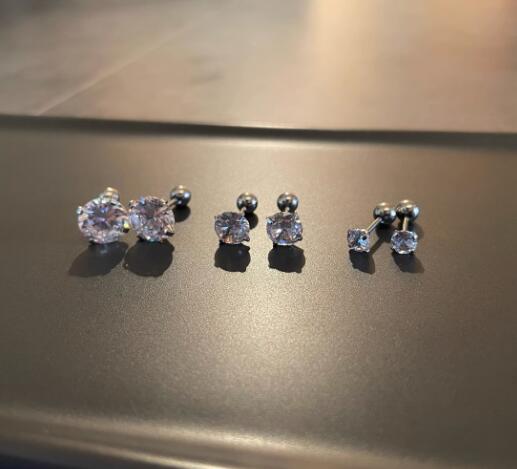 メンズアクセサリーの定番、シンプルで上品なラウンドカット人工ダイヤモンドピアスです。