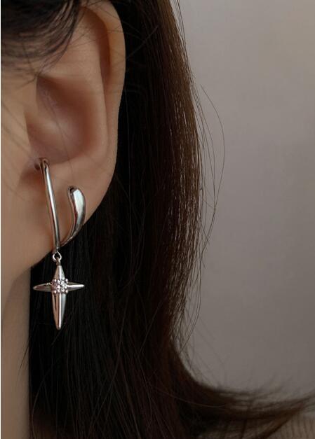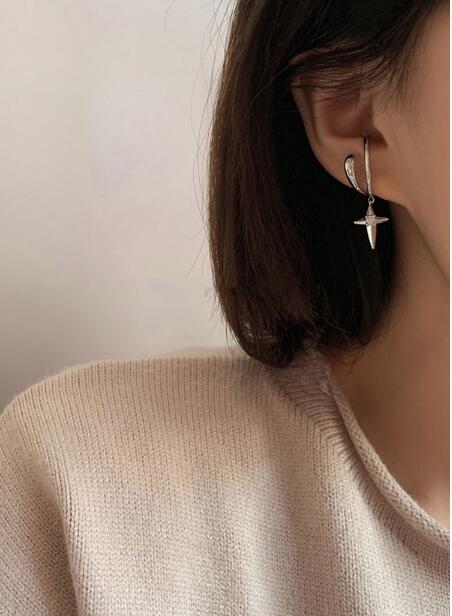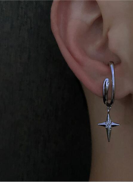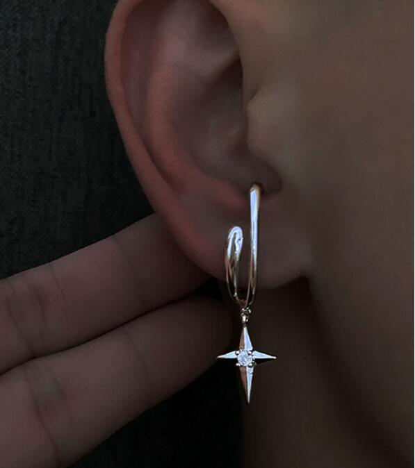 洗練されたデザインの星型チャーム付きフープピアスです。